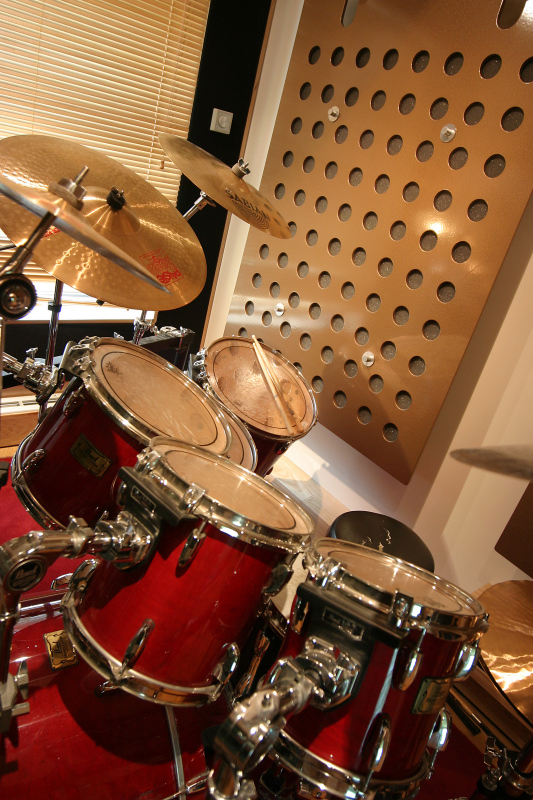Ten21 Studio Drum Booth and in house Pearl Masters Custom kit